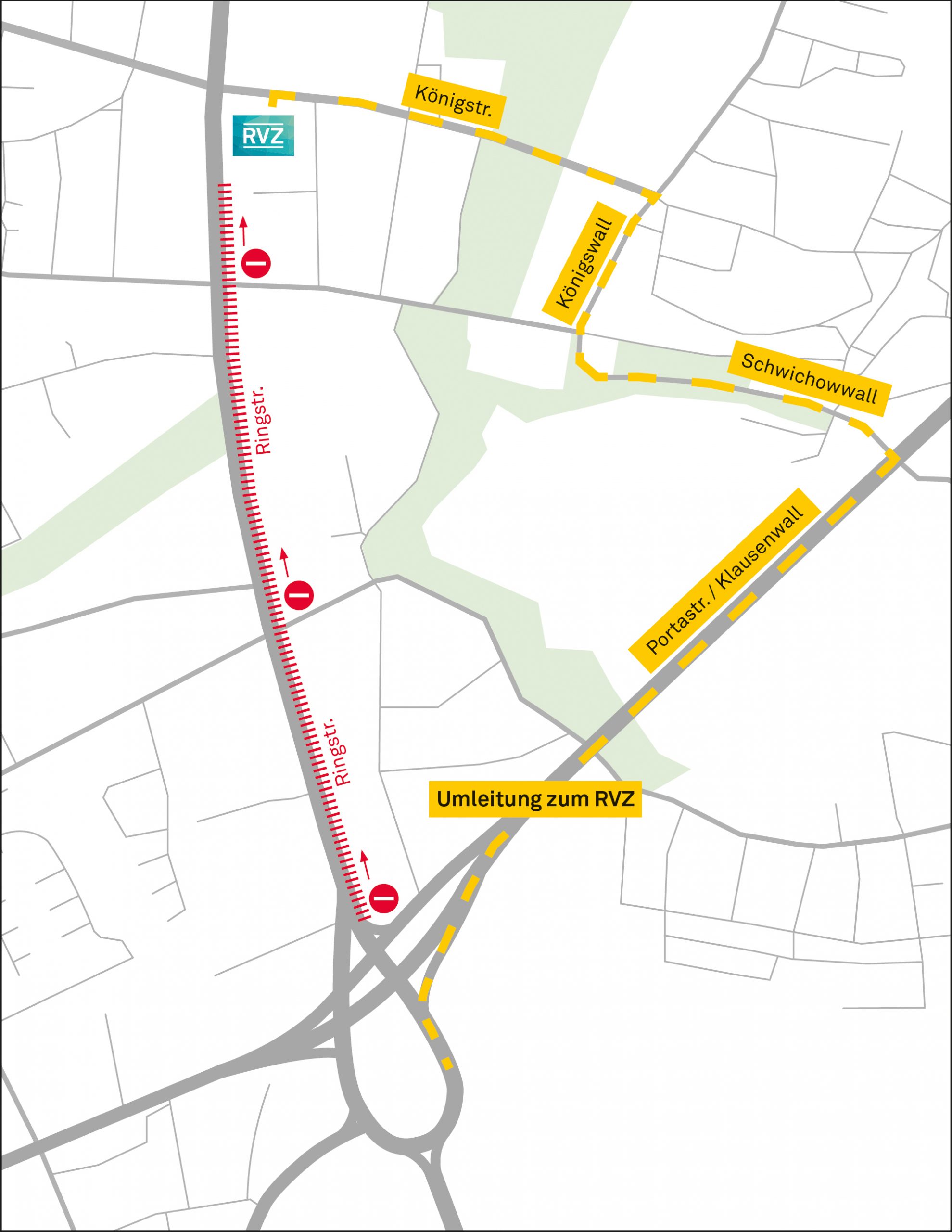 Aufgrund massiver Schäden an der Fahrbahn wird die Ringstraße in Minden in den kommenden Monaten saniert. Vom 27.04.2026 bis voraussichtlich Ende September wird die Ringstraße in Fahrtrichtung Norden von der Birne bis zum RVZ gesperrt sein. Wir bitten unsere Patienten dementsprechend mehr Zeit für ihre Anreise einzuplanen. Die Einfahrt zum RVZ-Parkplatz über die Königstraße wird weiterhin möglich sein.